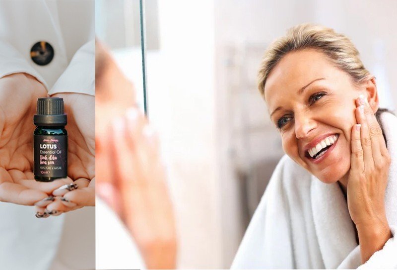 Tinh dầu hoa sen là một loại tinh dầu giàu chất chống oxy hóa, giúp ngăn ngừa và làm mờ nếp nhăn, đồng thời cung cấp độ ẩm cho da, giúp làm mềm mịn và tái tạo da trẻ trung hơn. Bạn có thể thêm vài giọt tinh dầu vào kem dưỡng hoặc dùng để massage da hàng ngày.