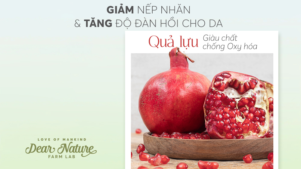 - Ngăn ngừa lão hóa: Chất chống oxy hóa trong quả lựu giúp bảo vệ collagen và elastin – hai thành phần quan trọng giúp da săn chắc, đàn hồi. Nhờ đó, da sẽ trở nên căng mịn, giảm thiểu sự xuất hiện của nếp nhăn và đường nhăn.