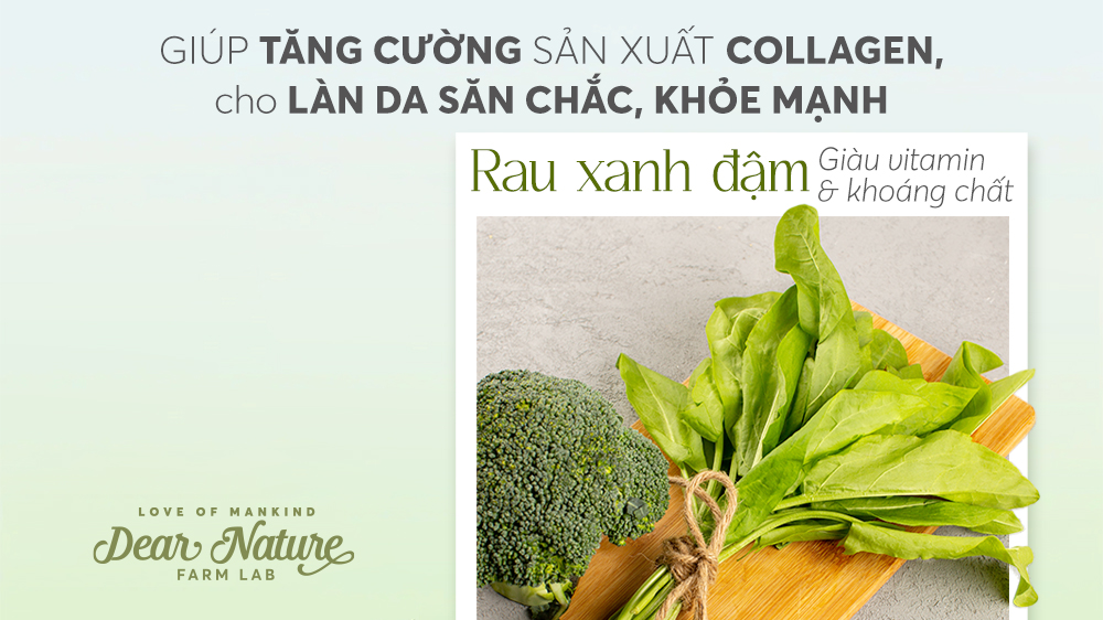 - Vitamin C, đặc biệt có trong cải bó xôi và bông cải xanh, đóng vai trò như một chất xúc tác quan trọng trong quá trình tổng hợp collagen.