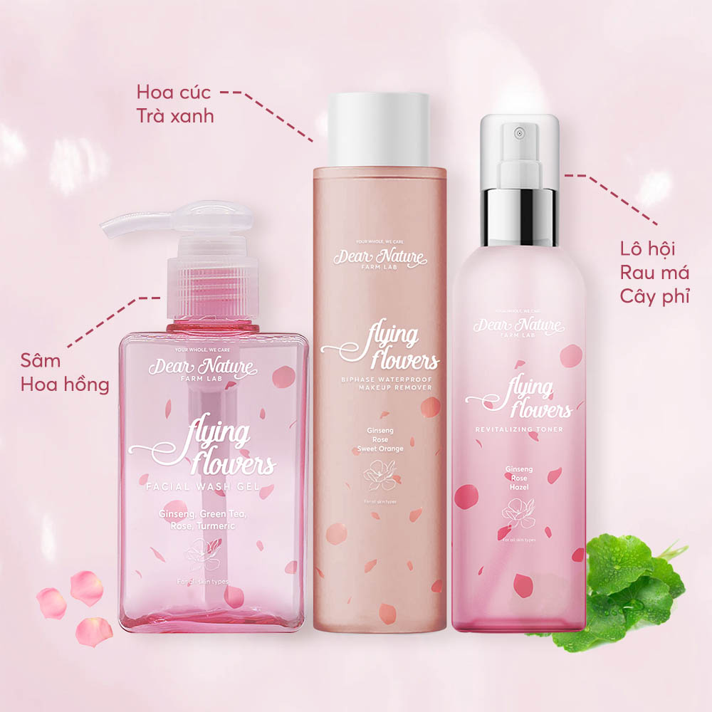 - Bộ Sản phẩm làm sạch chiết xuất hoa hồng, nhân sâm Flying Flower