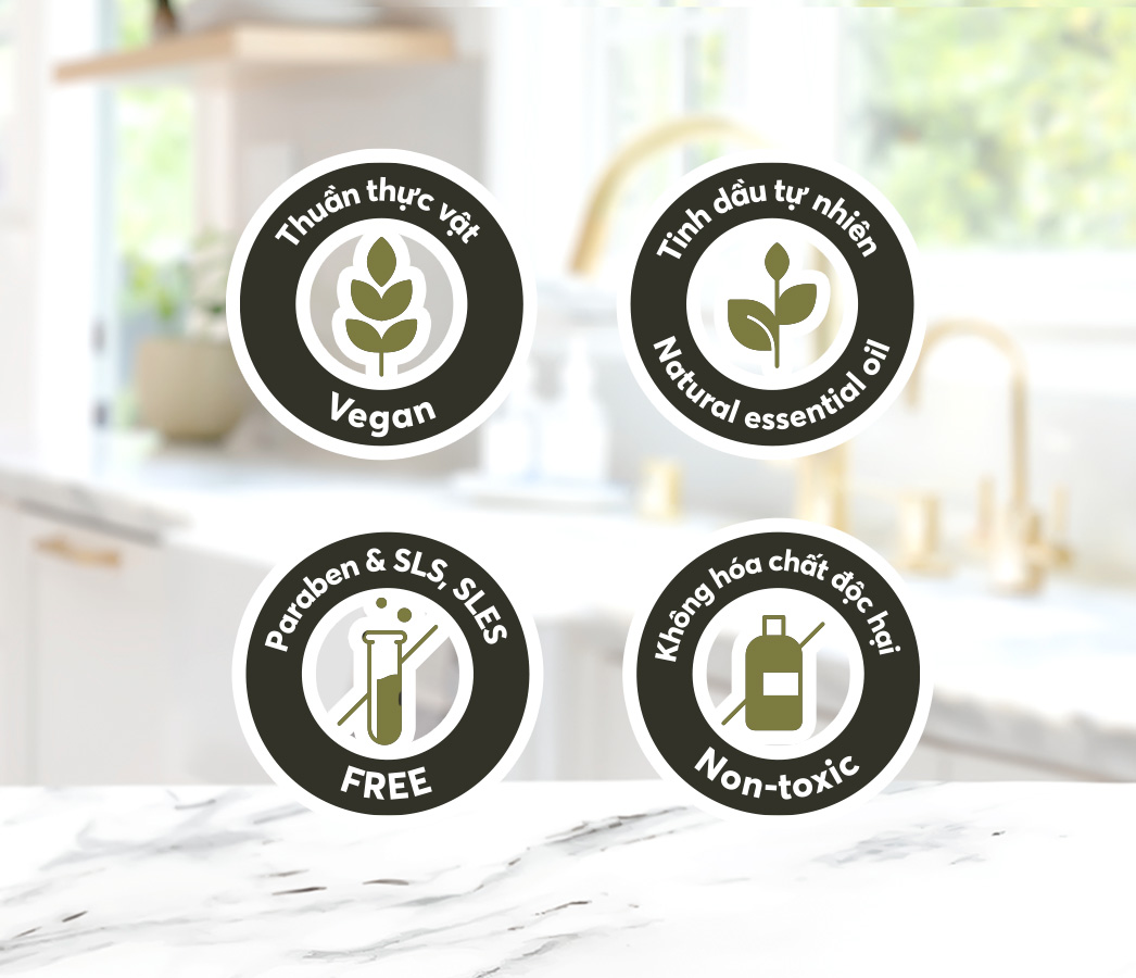 Vệ sĩ xanh cho căn bếp: Không chỉ làm sạch hiệu quả, sản phẩm còn giúp bạn khử trùng, kháng khuẩn tự nhiên, đồng thời bảo vệ môi trường nhờ khả năng phân hủy sinh học hoàn toàn.