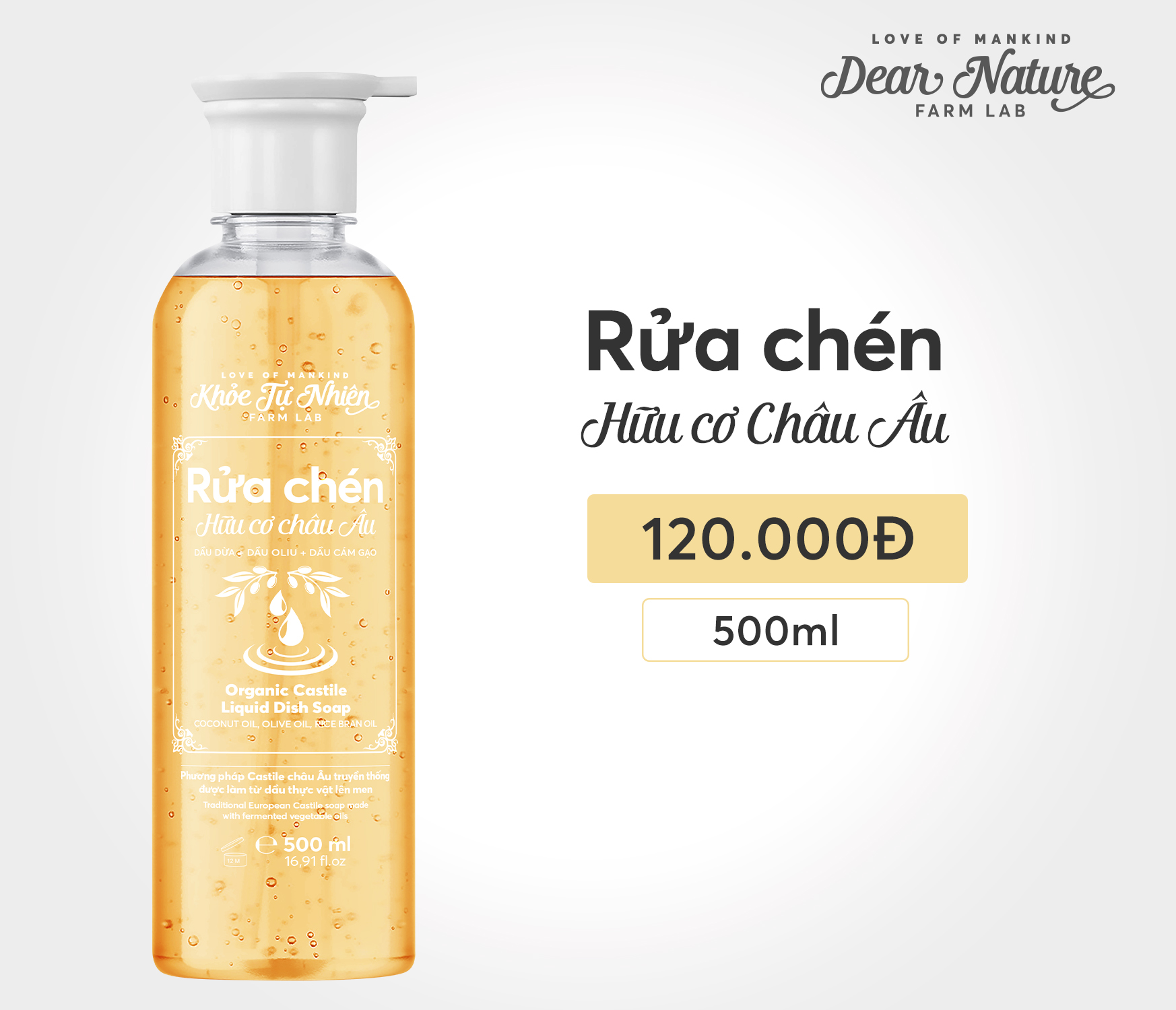 1. Công thức ủ chượp sinh học độc đáo: Kế thừa tinh hoa từ phương pháp Castile Soap truyền thống của Châu Âu, nước rửa chén của chúng tôi không chỉ làm sạch sâu mọi vết bẩn cứng đầu trên bát đĩa, xoong nồi mà còn dịu nhẹ với da tay nhờ hỗn hợp dầu thực vật ủ chượp sinh học độc đáo.
