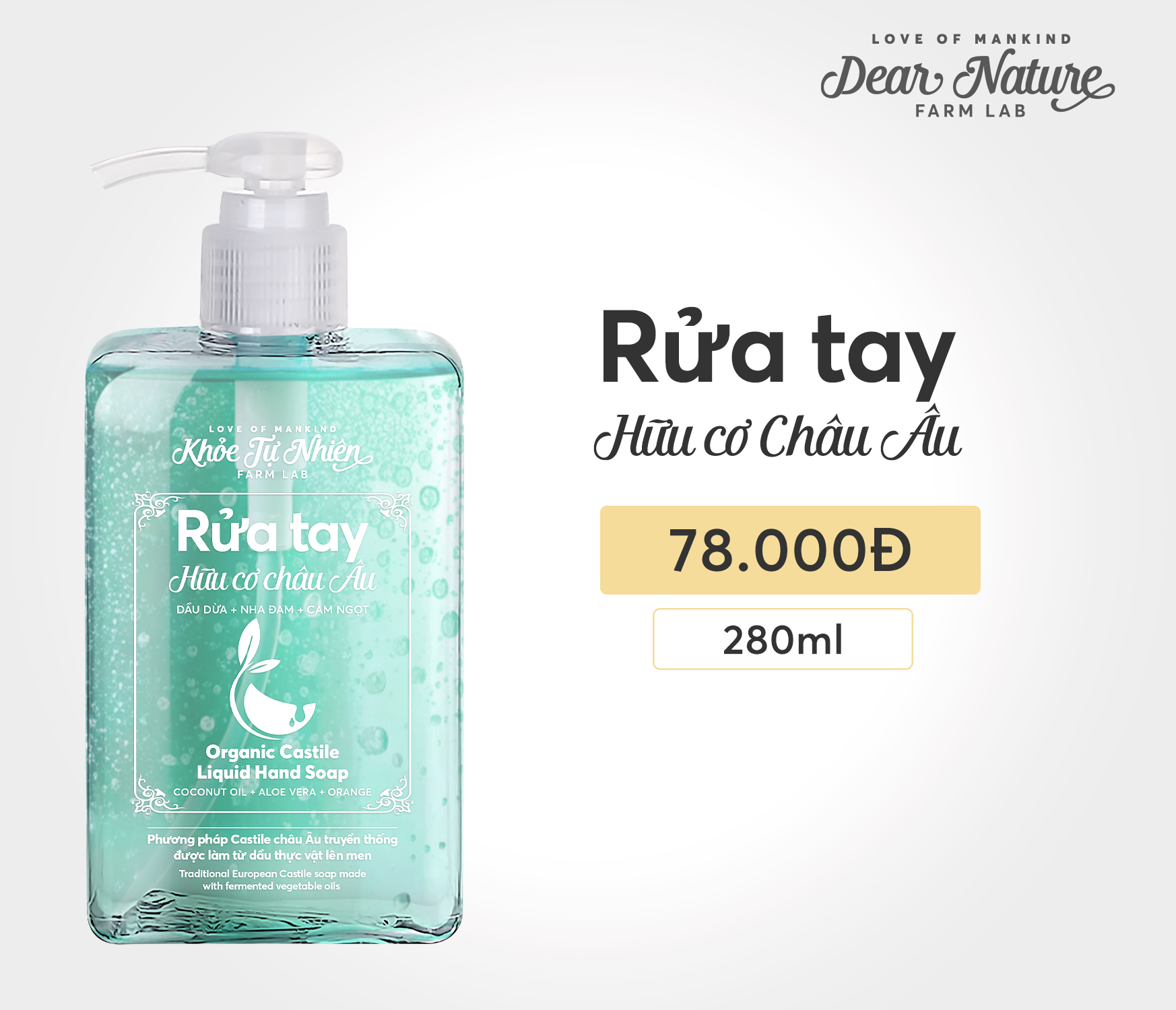 Tinh túy thiên nhiên trong từng giọt: Chứa nhiều thành phần hữu cơ, được ủ chượp từ dầu dừa nguyên chất và các loại dầu thực vật quý giá, không chỉ làm sạch mà còn nuôi dưỡng, bảo vệ làn da tay bạn.