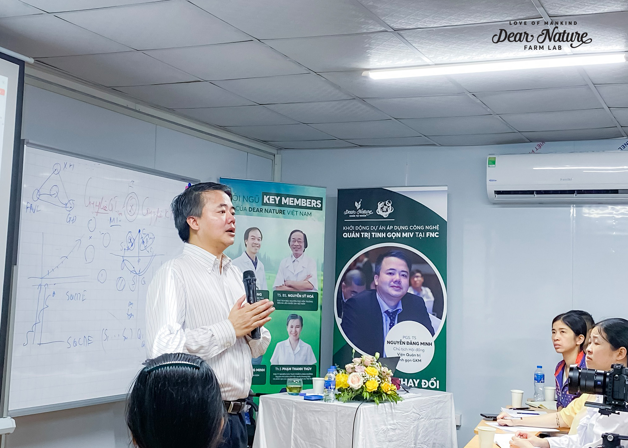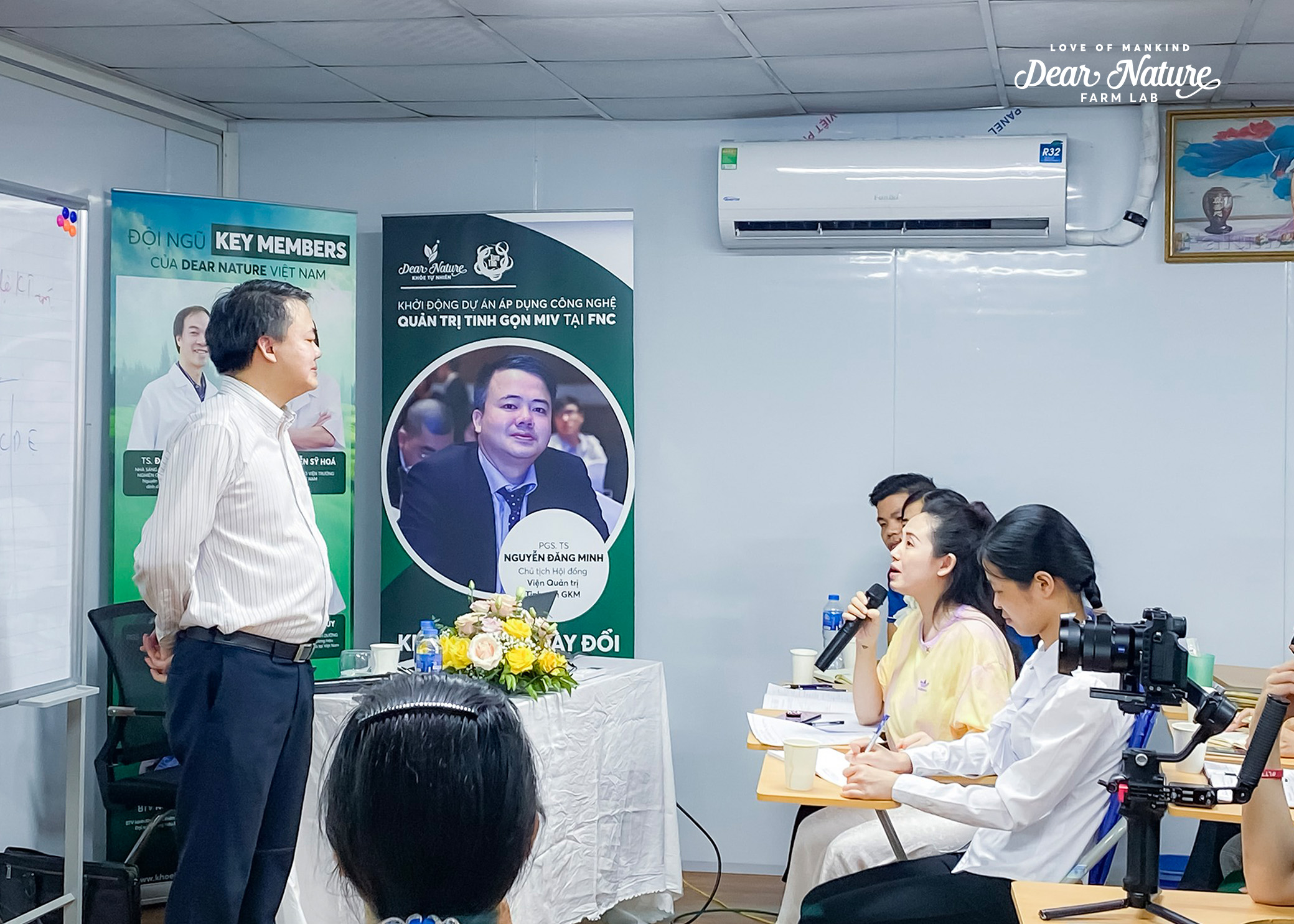 Hôm nay, tôi xin chính thức giới thiệu lễ khởi động dự án quản trị tinh gọn MIV “Khát vọng thay đổi để tốt hơn tại Dear Nature Việt Nam” với sự chủ trì của giám đốc dự án, PGS TS Nguyễn Đăng Minh. Mỗi chúng ta sẽ là một mắt xích quan trọng trong sự thành công của dự án này. Rất mong các đối tác, các nhà phân phối, các đại lý, các quý khách hàng luôn đồng hành sát cánh với Dear Nature Vietnam để chúng ta cùng hoàn thành thệ nguyện này. Xin trước hết cảm ơn sự góp sức của tất cả các bạn đối tác, các nhà phân phối, các đại lý trên mọi miền đất nước, xin chân thành cảm ơn khối sản xuất Dear Nature tại Hưng Yên, khối Dược Trang Viên Thanh Hóa, khối cửa hàng Showroom 288 Trần Khát Chân Hà Nội, khối văn phòng Showroom Sài Gòn, khối văn phòng Tây Trà Hà Nội, khối cửa hàng Showroom Bắc Ninh, khối cửa hàng Showroom Phú Yên và khối vận hành kênh Khỏe Tự Nhiên, các thành viên công ty GKM Việt Nam.