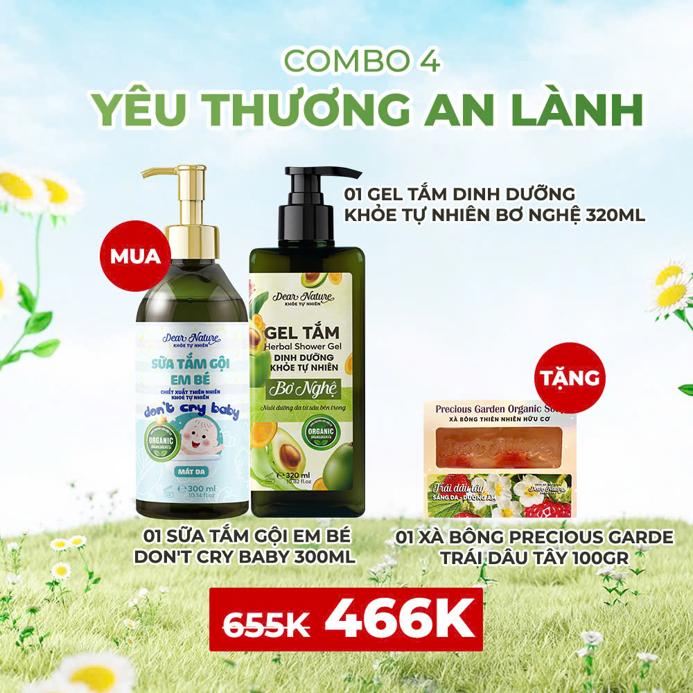 Mua: 1 Combo gồm: Sữa tắm gội em bé Don't Cry Baby 300ml + Gel tắm dinh dưỡng Khỏe Tự Nhiên bơ nghệ 320ml