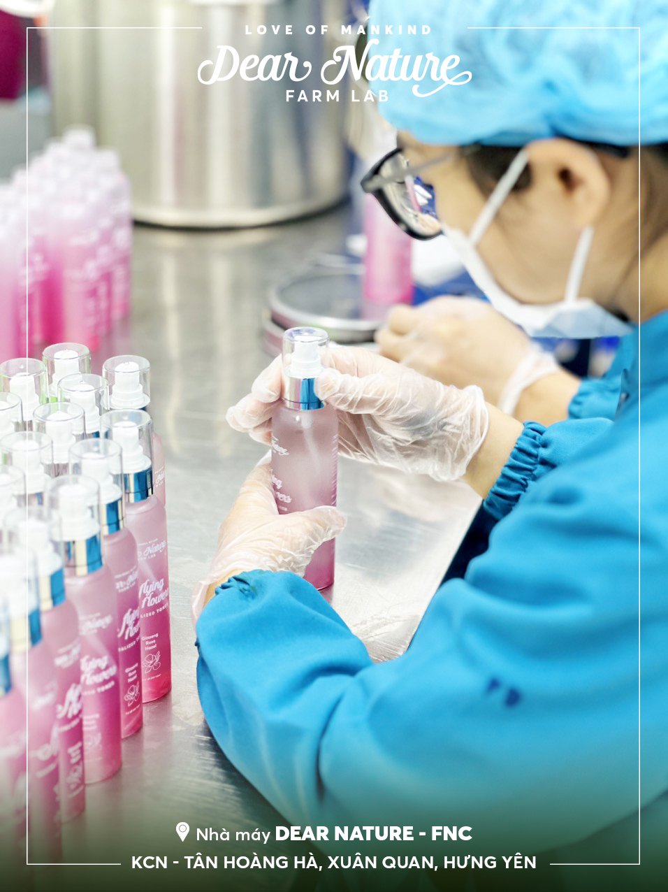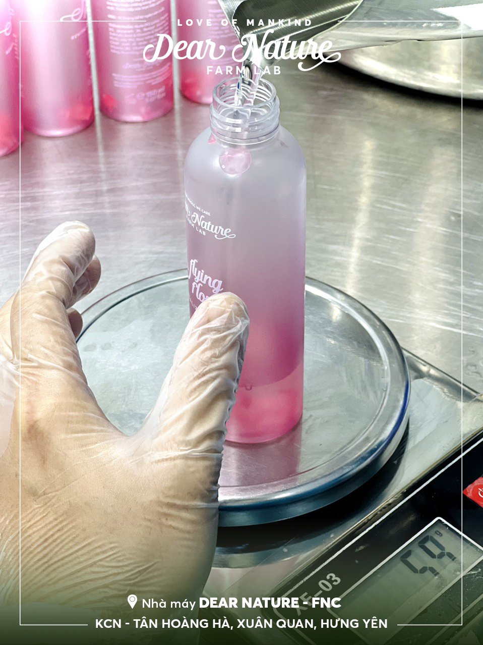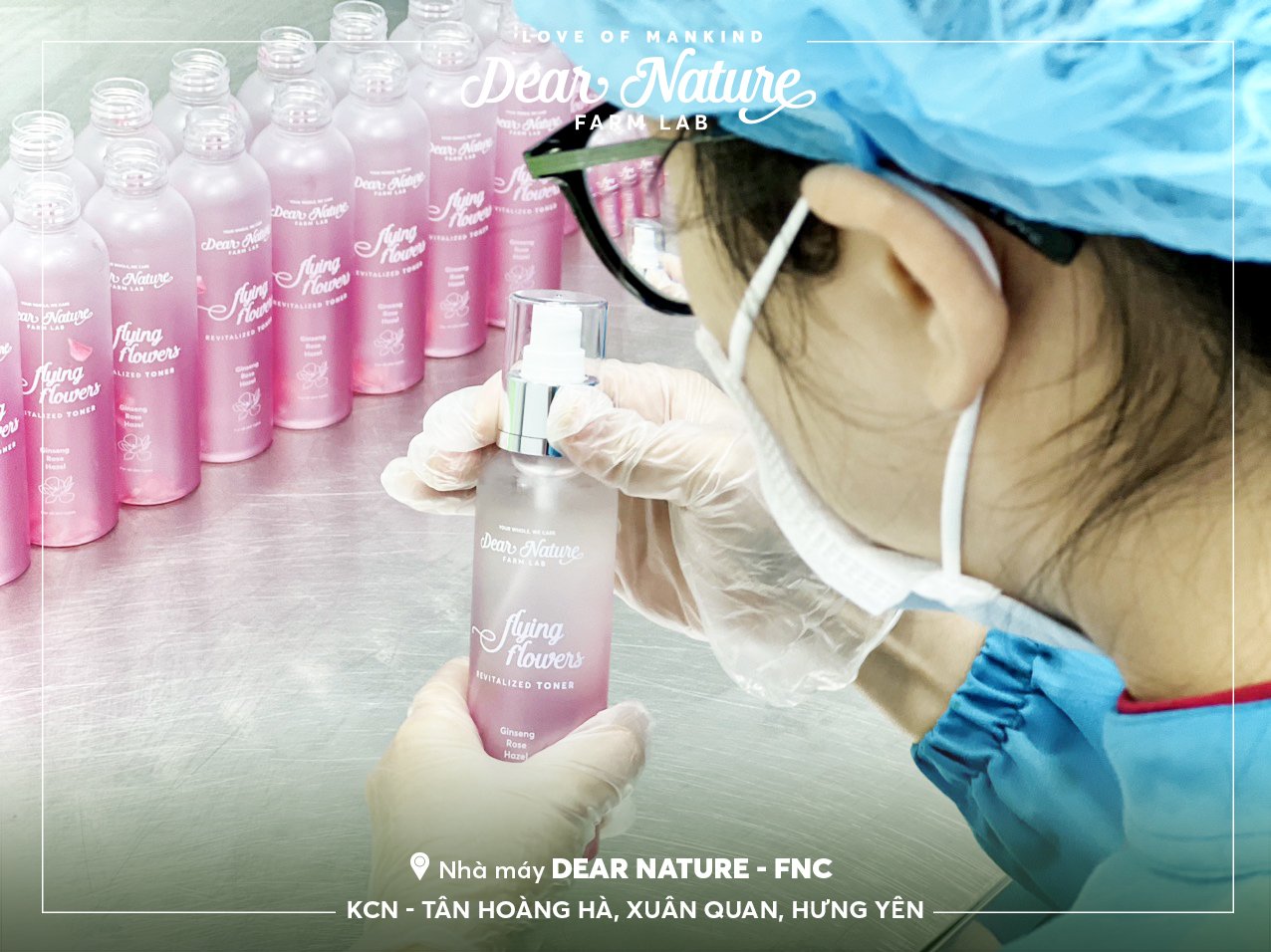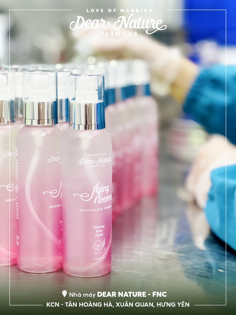 Mời quý vị cùng Dear Nature theo dõi cận cảnh các công nhân tại nhà máy Dear Nature thực hiện công đoạn chiết rót Toner Hoa hồng Flying Flowers.