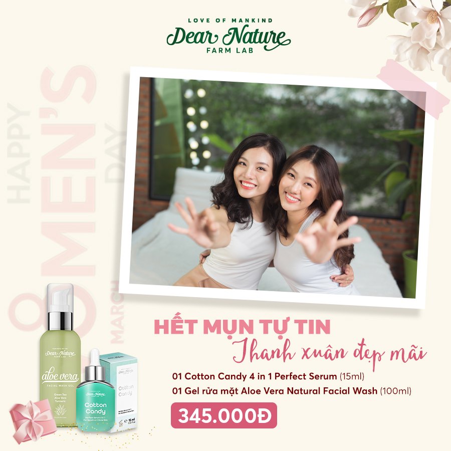 𝐒𝐞𝐭 𝐪𝐮𝐚̀ 𝐇𝐞̂́𝐭 𝐌𝐮̣𝐧 𝐓𝐮̛̣ 𝐓𝐢𝐧 – 𝐓𝐡𝐚𝐧𝐡 𝐗𝐮𝐚̂𝐧 Đ𝐞̣𝐩 𝐌𝐚̃𝐢: Khi mua 01 Cotton Candy 4 in 1 Perfect Serum 15ml TẶNG 01 Gel rửa mặt Aloe Vera Natural Facial Wash 100ml. 𝐆𝐢𝐚́ 𝐤𝐡𝐮𝐲𝐞̂́𝐧 𝐦𝐚̣𝐢: 𝟑𝟒𝟓,𝟎𝟎𝟎