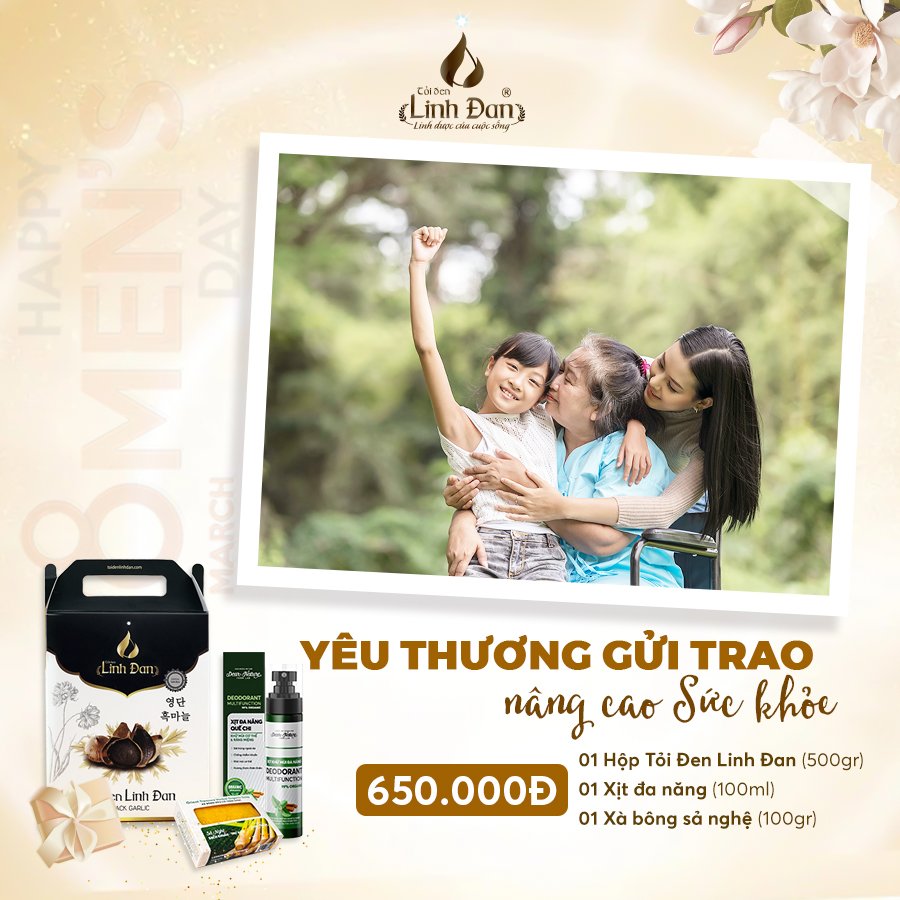 𝐒𝐞𝐭 𝐪𝐮𝐚̀ 𝐘𝐞̂𝐮 𝐓𝐡𝐮̛𝐨̛𝐧𝐠 𝐆𝐮̛̉𝐢 𝐓𝐫𝐚𝐨 – 𝐍𝐚̂𝐧𝐠 𝐂𝐚𝐨 𝐒𝐮̛́𝐜 𝐊𝐡𝐨̉𝐞: Khi mua 01 hộp 500gr tỏi đen Linh Đan TẶNG 01 xịt đa năng 100ml, 01 xà bông sả nghệ 100gr. 𝐆𝐢𝐚́ 𝐤𝐡𝐮𝐲𝐞̂́𝐧 𝐦𝐚̣𝐢: 𝟔𝟓𝟎,𝟎𝟎𝟎