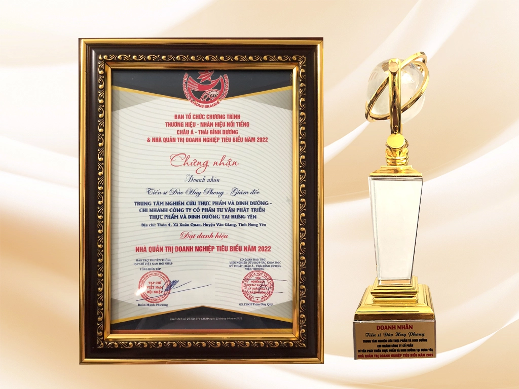 Cùng với sự nỗ lực không ngừng nghỉ, đến tháng 4/2022, Thương hiệu Trung Tâm Nghiên Cứu Thực Phẩm & Dinh Dưỡng và thương hiệu Khỏe Tự Nhiên đạt giải thưởng Thương hiệu Nhãn Hiệu Nổi Tiếng Châu Á Thái Bình Dương 2022. Cùng trong tháng đó, lãnh đạo Trung Tâm Nghiên Cứu, Tiến sĩ CNSH Đào Huy Phong nhận giải thưởng lãnh đạo tiêu biểu Châu Á Thái Bình Dương.