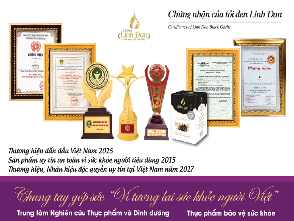 Năm 2017, Tỏi đen Linh Đan nhận giải thưởng Thương hiệu nhãn hiệu độc quyền uy tín Việt Nam năm 2017 do Liên Hiệp các Hội Khoa Học Kỹ Thuật Việt Nam bình chọn
