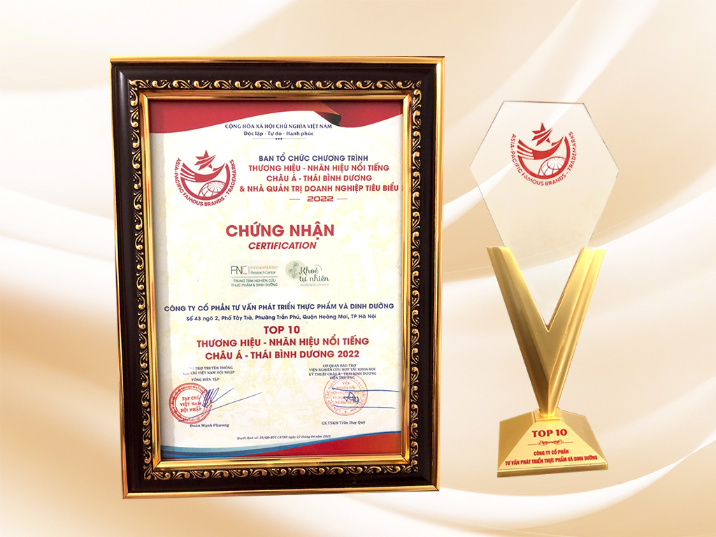 4/2022: Thương hiệu Trung Tâm Nghiên Cứu Thực Phẩm & Dinh Dưỡng và thương hiệu Khỏe Tự Nhiên đạt giải thưởng Thương hiệu Nhãn Hiệu Nổi Tiếng Châu Á Thái Bình Dương 2022