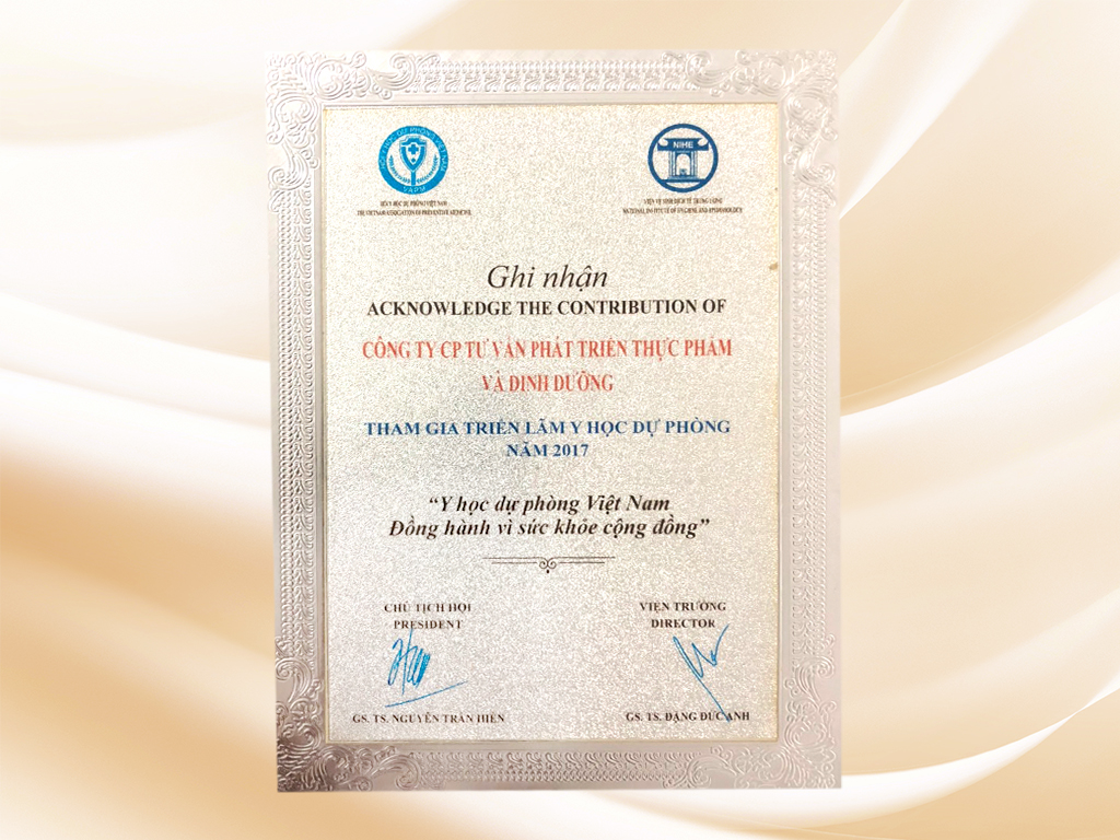 2017: Hội Y Học Dự Phòng Việt Nam và Viện Vệ Sinh Dịch Tễ Trung Ương ghi nhận Trung Tâm Nghiên Cứu Thực Phẩm và Dinh Dưỡng đã cống hiến “Vì Y học dự phòng Việt Nam – Đồng hành vì sức khỏe cộng đồng”
