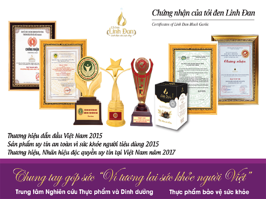2015: Thương hiệu tỏi đen Linh Đan đạt giải thưởng Sản phẩm uy tín an toàn vì sức khỏe người tiêu dùng năm 2015 do Hội Khoa Học Công Nghệ & Lương thực thực phẩm trao tặng