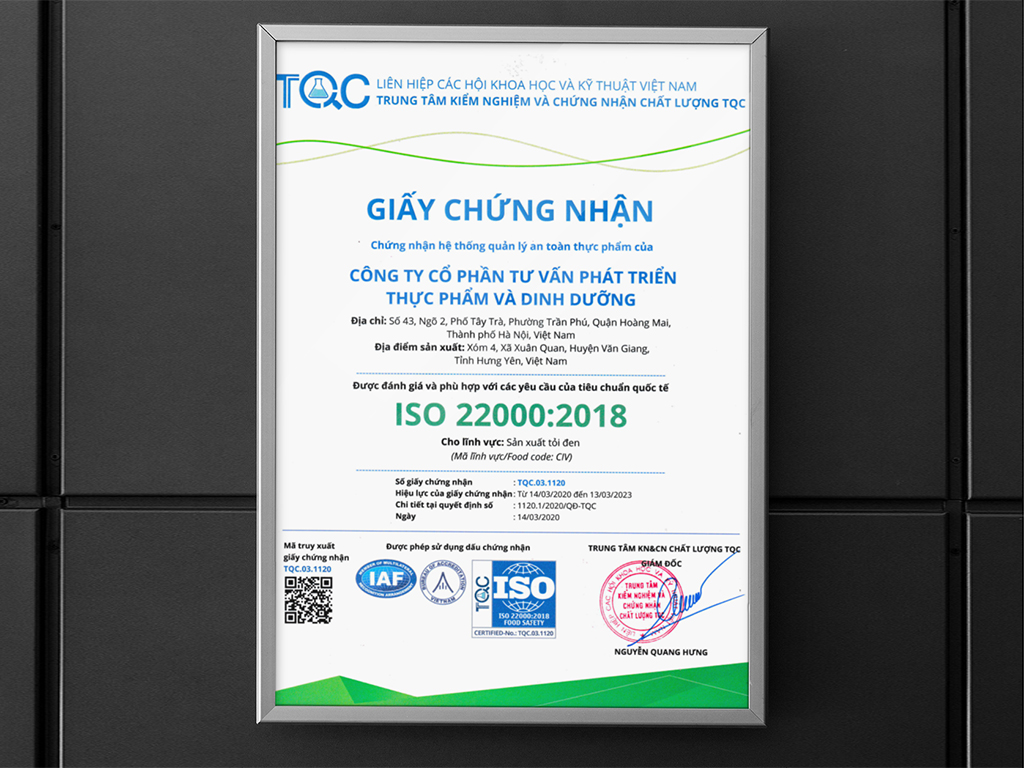 2020: Trung Tâm Nghiên Cứu Thực Phẩm và Dinh Dưỡng nhận giấy chứng nhận quốc tế về hệ thống quản lý an toàn thực phẩm ISO 22000-2018