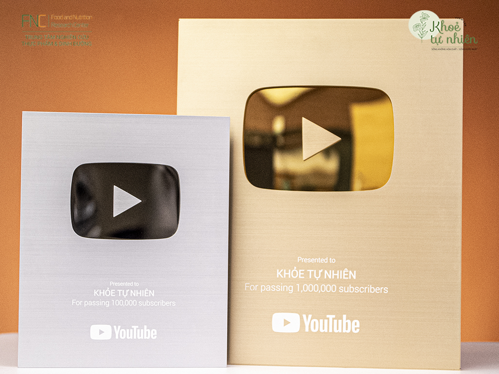 6/2020: Kênh thông tin sức khỏe Khỏe Tự Nhiên đạt nút vàng YouTube với 1 triệu người đăng ký theo dõi