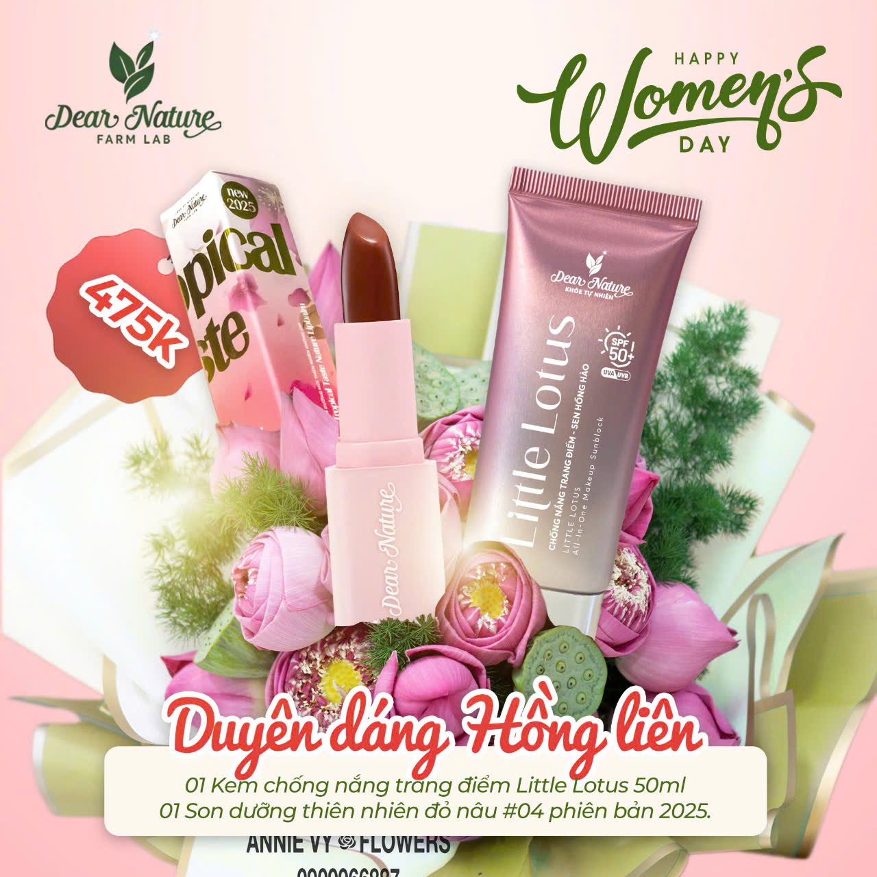 Nhân dịp Quốc tế Phụ nữ 8/3, Dear Nature dành tặng bạn ưu đãi đặc biệt khi mua Kem chống nắng Sen Hồng Hào LITTLE LOTUS: