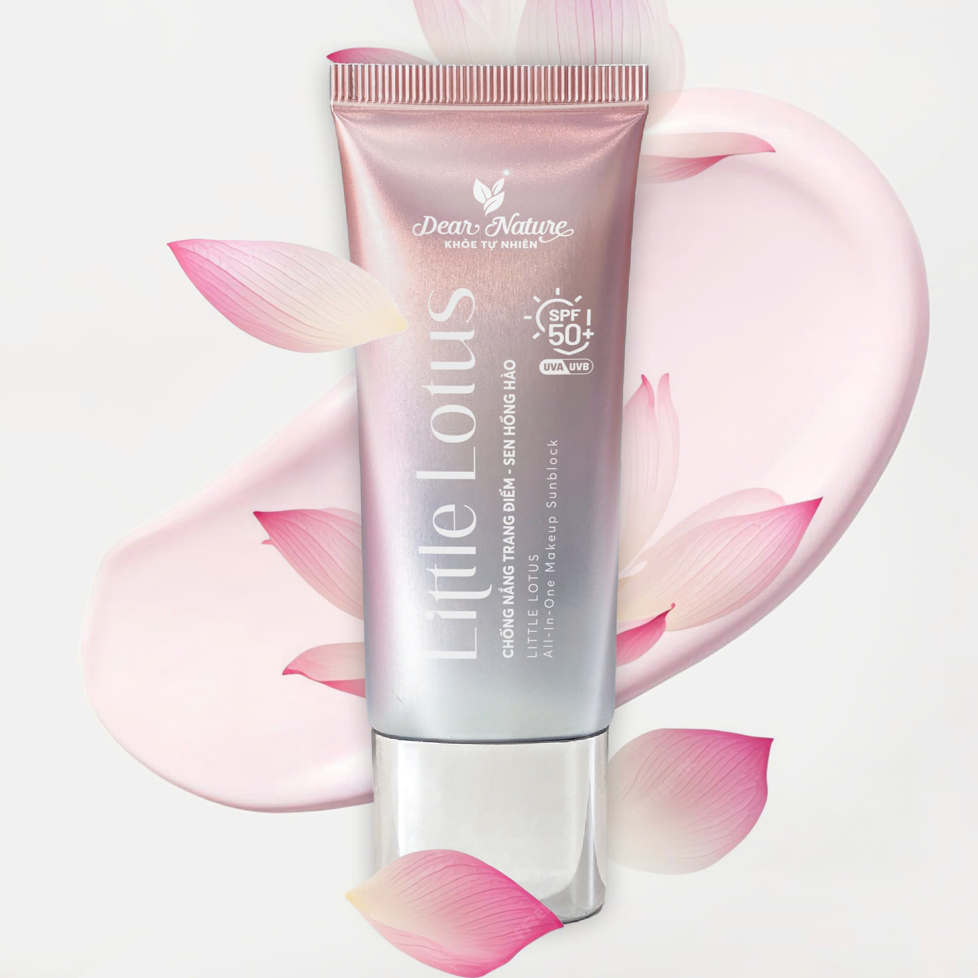 Lấy cảm hứng từ vẻ đẹp thanh cao, thuần khiết của hoa sen – quốc hoa Việt Nam, Dear Nature đã ấp ủ và cho ra đời một "tuyệt phẩm" mới, kết hợp hoàn hảo giữa bảo vệ da, trang điểm và dưỡng da: Kem chống nắng trang điểm Sen Hồng Hào LITTLE LOTUS All In-One Makeup Sunblock