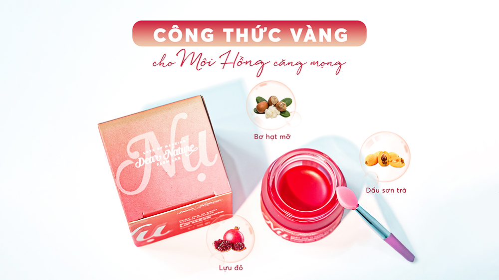 Nếu bạn đang gặp tình trạng môi thâm, thường xuyên nứt nẻ, chúng tôi giới thiệu với bạn sản phẩm Mặt nạ ủ môi Nụ. Sản phẩm là sự kết hợp hoàn hảo của Lựu đỏ và dầu sơn trà, bí quyết của các quý cô Nhật Bản giúp dưỡng đôi môi luôn tươi tắn, hồng hào, đầy sức sống, cải thiện tình trạng môi thâm, với các thành phần dưỡng "vàng" như chiết xuất lựu đỏ, dầu sơn trà Nhật Bản, tinh dầu quả bơ, vitamin E, H.A,...