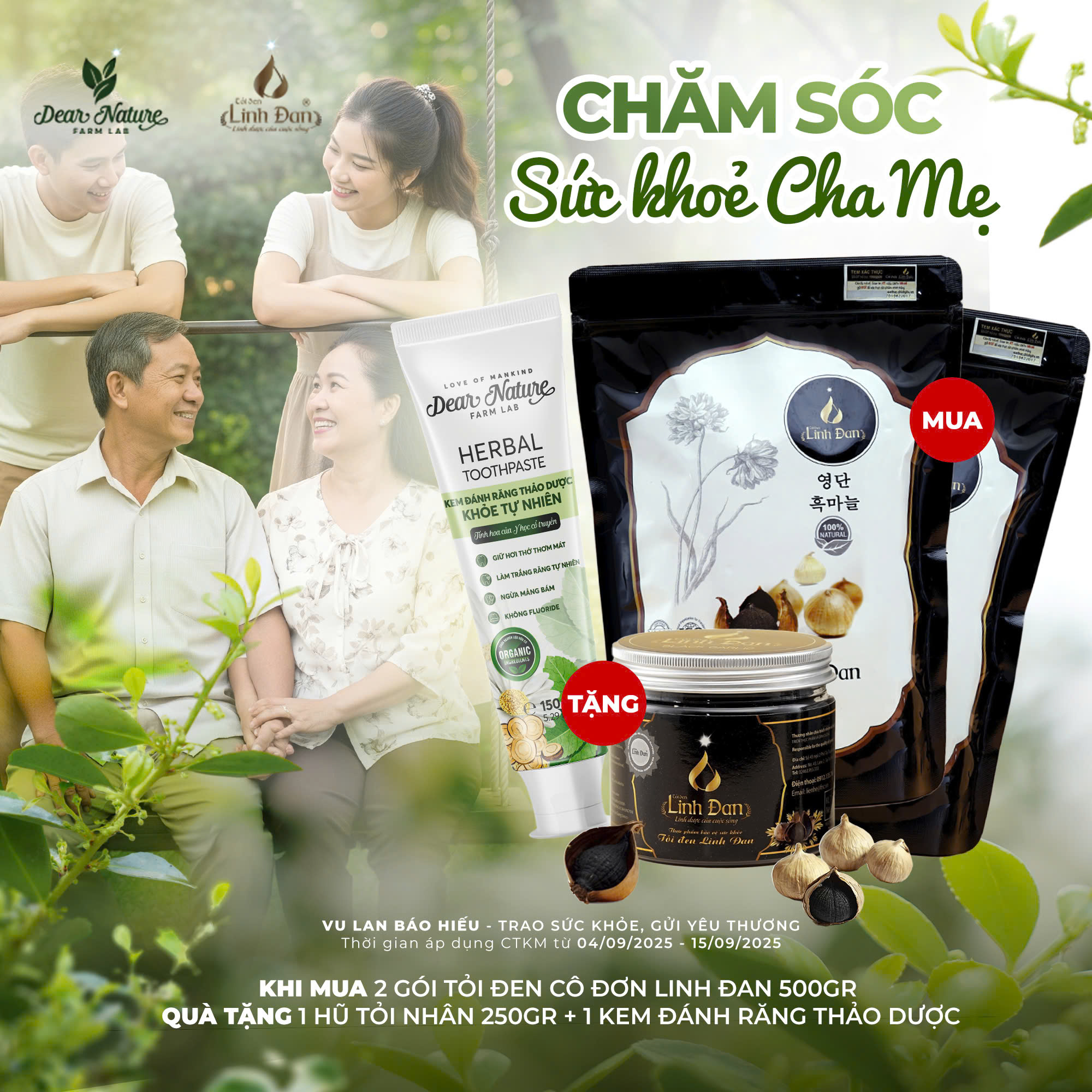 Bao gồm: Mua 02 Gói Tỏi đen Linh Đan 500gr, tặng ngay 01 Hũ nhân tỏi đen Linh đan 250gr và 01 Kem đánh răng thảo dược 150gr.