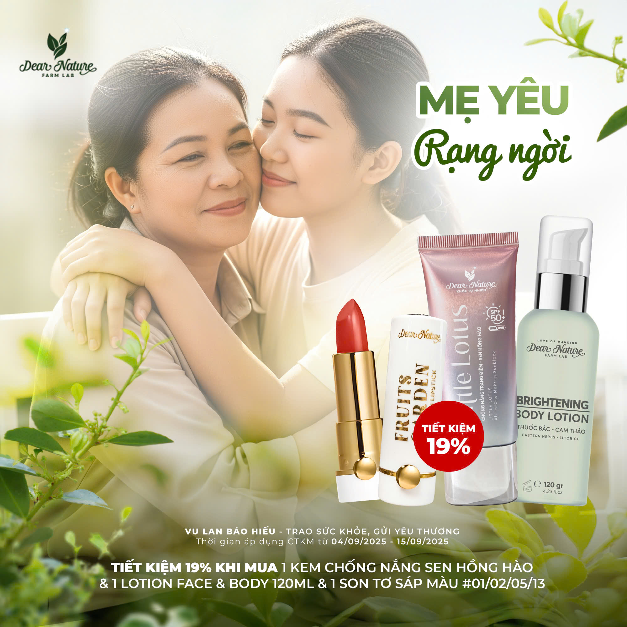 Nhân mùa báo hiếu, Dear Nature gửi đến quý khách hàng chương trình tri ân đặc biệt mang tên "VU LAN BÁO HIẾU – TRAO SỨC KHỎE, GỬI YÊU THƯƠNG", với nhiều combo sản phẩm thiên nhiên cao cấp giúp chăm sóc sức khỏe và sắc đẹp toàn diện cho cả gia đình.