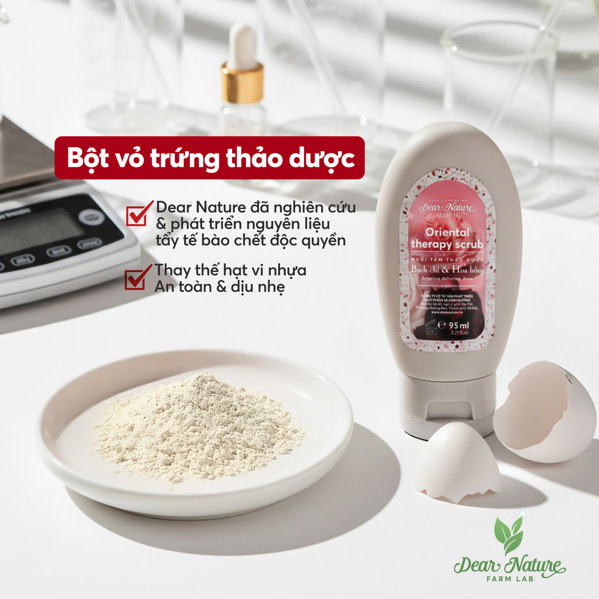 Muối hồng Himalaya & Bột vỏ trứng: Các hạt muối và bột vỏ trứng siêu mịn nhẹ nhàng lấy đi lớp tế bào chết sần sùi, bụi bẩn trên bề mặt da. Đồng thời, muối hồng còn giúp thanh lọc, cung cấp hơn 80 loại khoáng chất vi lượng, trong khi bột vỏ trứng hỗ trợ nuôi dưỡng và tái tạo làn da.