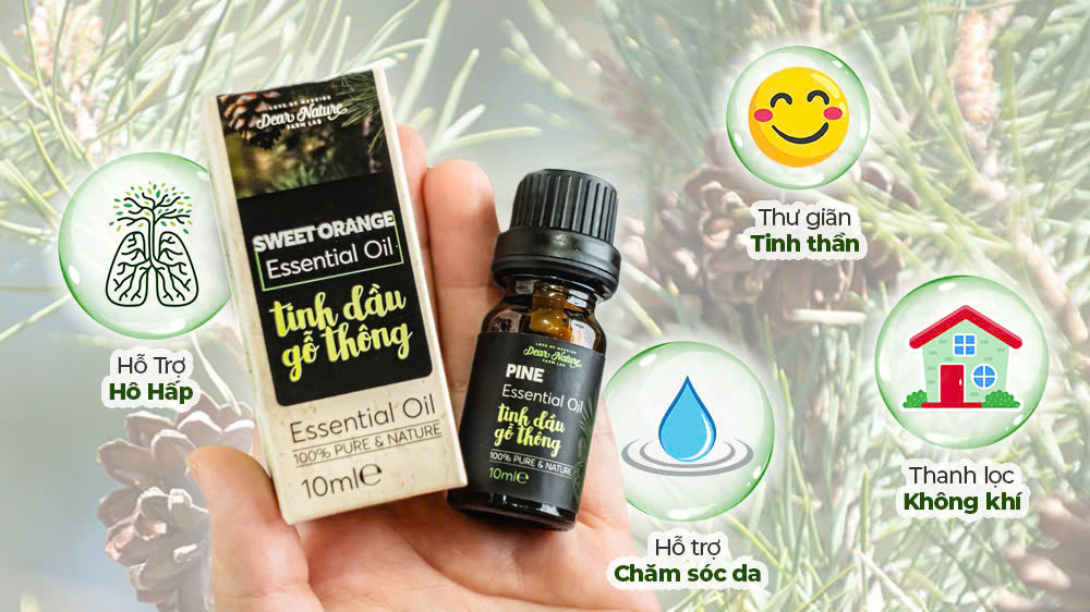 Tinh dầu Gỗ Thông Dear Nature mang đến nhiều lợi ích cho sức khỏe và tinh thần, từ việc hỗ trợ hô hấp, thanh lọc không khí đến thư giãn tinh thần, chăm sóc da.