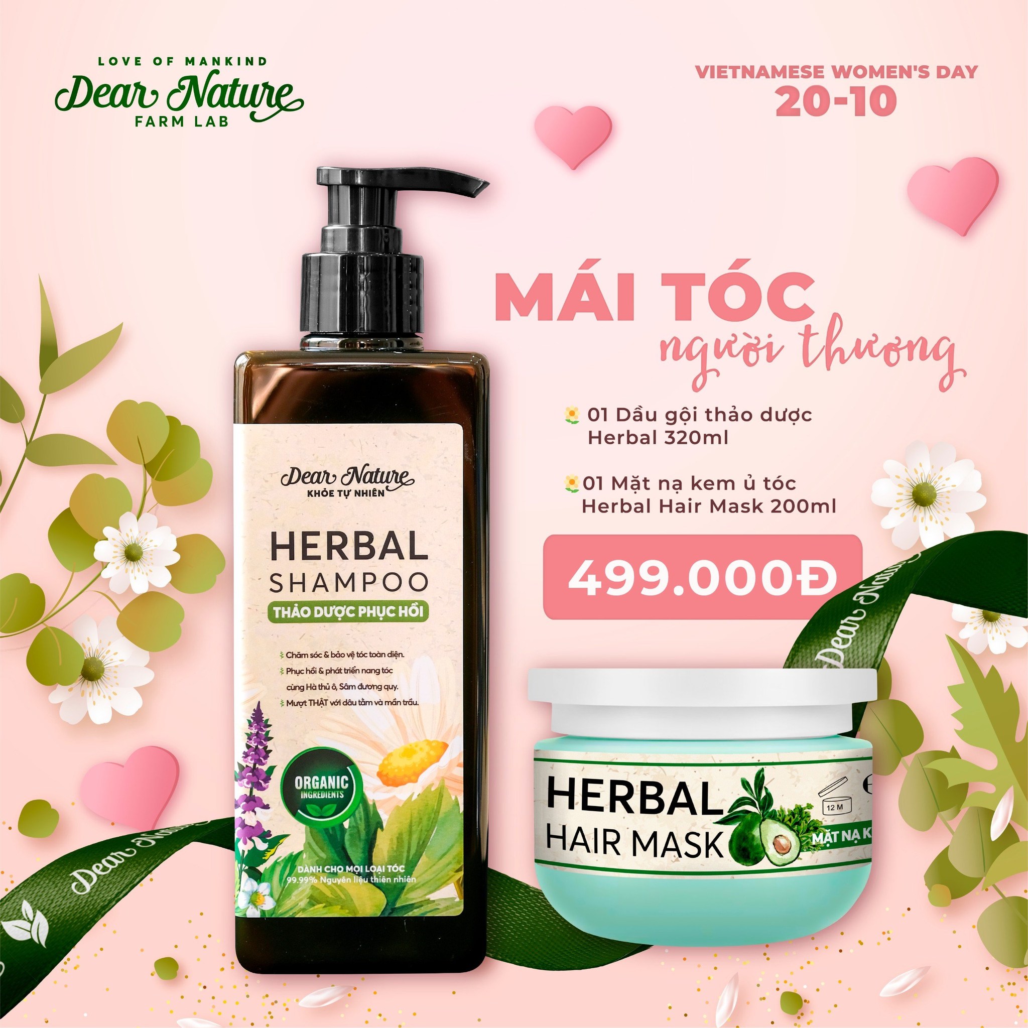 01 Dầu gội thảo dược Herbal 320ml + 01 Mặt nạ kem ủ dưỡng tóc Herbal Hair Mask 200ml CHỈ CÒN 499K
