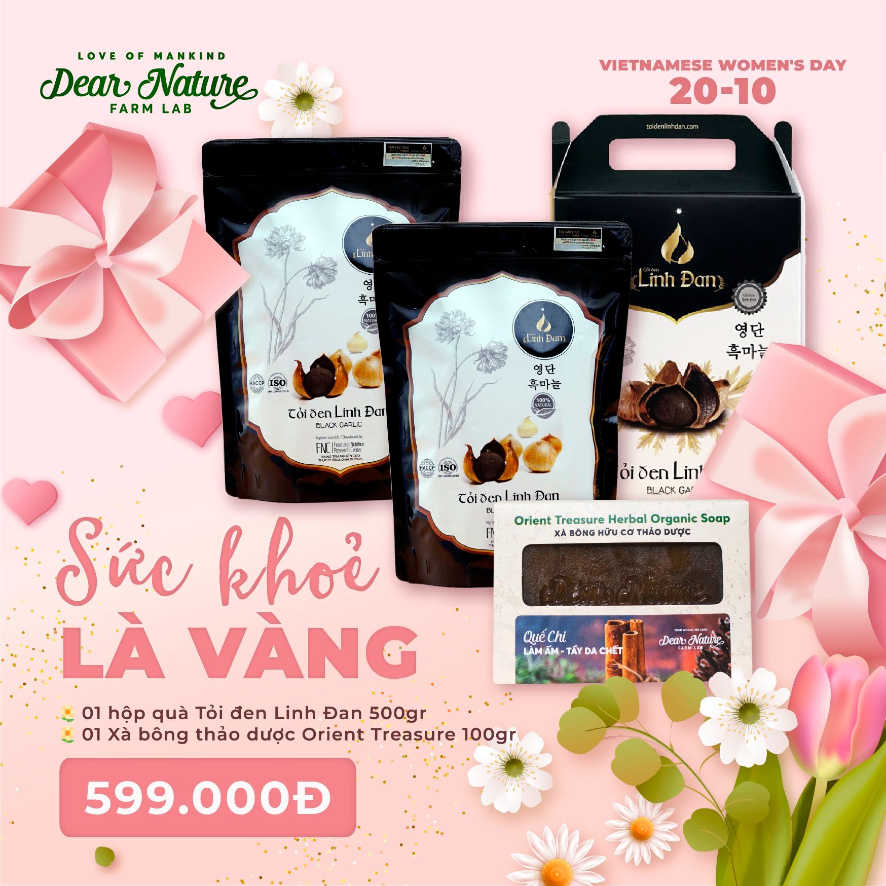 01 hộp quà Tỏi đen Linh Đan 500gr + 01 Xà bông thảo dược Orient Treasure 100gr (quà tặng ngẫu nhiên: sả nghệ hoặc quế chi) CHỈ CÒN 599K