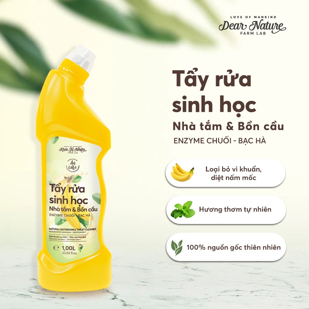 Tiếp nối sản phẩm Nước giặt sinh học thuần thực vật "Như Mây", Dear Nature tiếp tục cho ra mắt sản phẩm Tẩy rửa sinh học Enzyme Chuối - Bạc Hà cho sàn nhà tắm, bồn cầu trong bộ sản phẩm vệ sinh và chăm sóc nhà cửa An Care