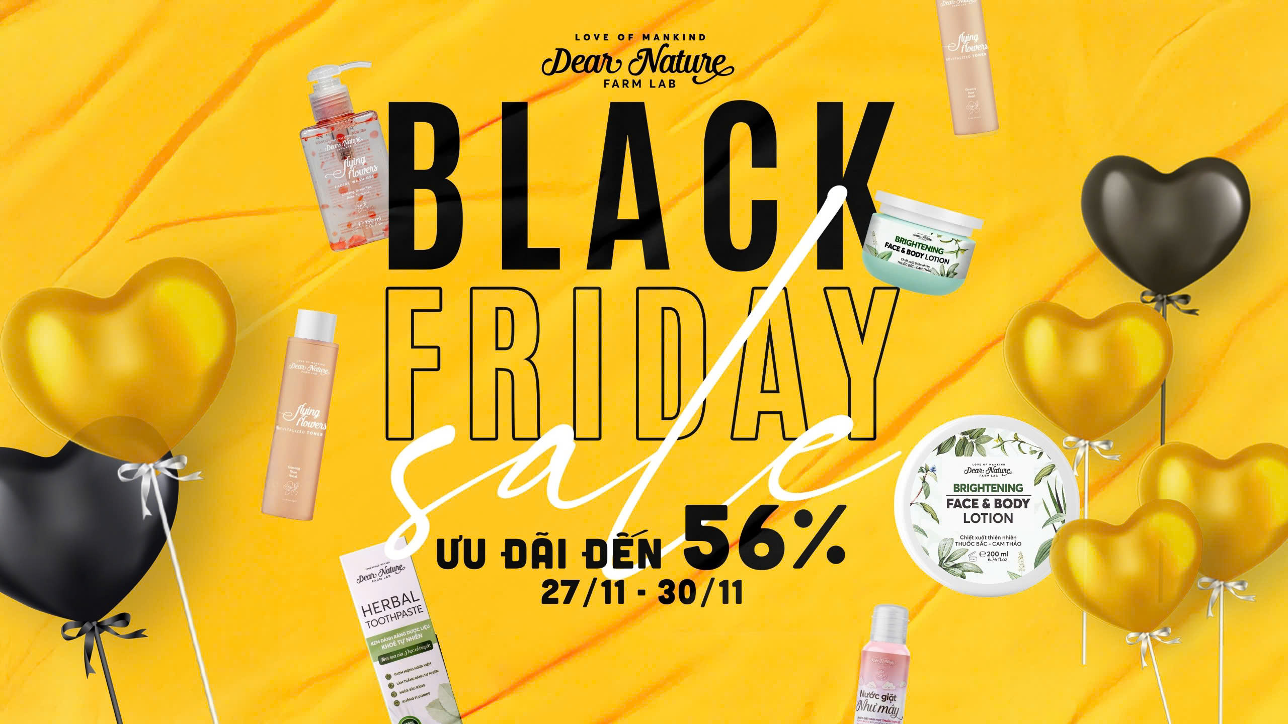 Từ ngày 27/11 đến 30/11, Dear Nature mang đến chương trình khuyến mãi Black Friday với combo sản phẩm siêu hấp dẫn, giá cực hời và quà tặng ngập tràn.