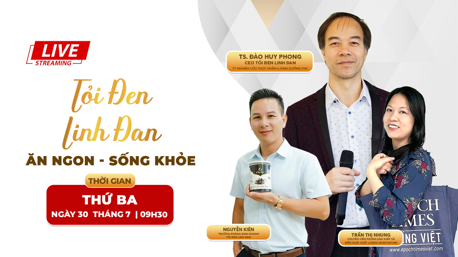 Bật mí bí mật sức khỏe từ tỏi đen Linh Đan trong buổi livestream đặc biệt! Khám phá quy trình sản xuất độc đáo, giao lưu với chuyên gia và nhận ưu đãi hấp dẫn. Đừng bỏ lỡ cơ hội vào 9h30 sáng thứ Ba, ngày 30/07/2024