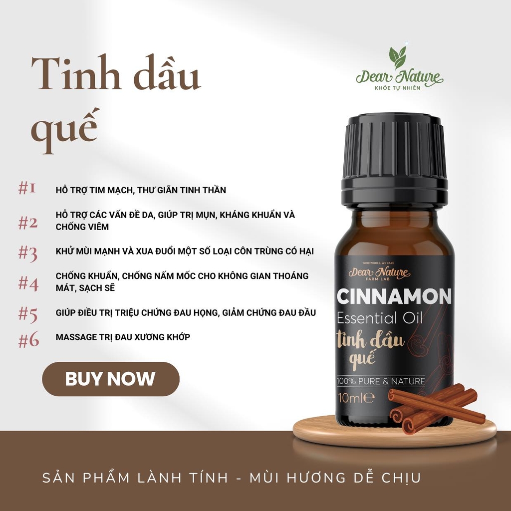 | Thành phần | Tinh dầu quế nguyên chất 100% |