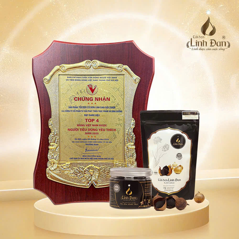 Và năm nay, 2025, giải thưởng Top 4 một lần nữa khẳng định vị thế vững chắc của Tỏi Đen Linh Đan trong lòng người tiêu dùng.