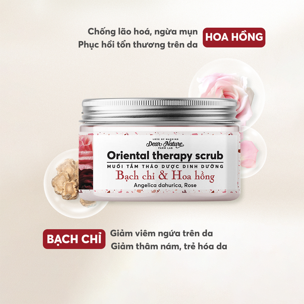 - Muối tắm thảo dược dưỡng da 3 trong 1 Tắm-Tẩy-Dưỡng Bạch chỉ Hoa hồng: Mang đến trải nghiệm tắm thư giãn, giúp tẩy tế bào chết, làm sạch da, đồng thời dưỡng da sáng mịn, đều màu.